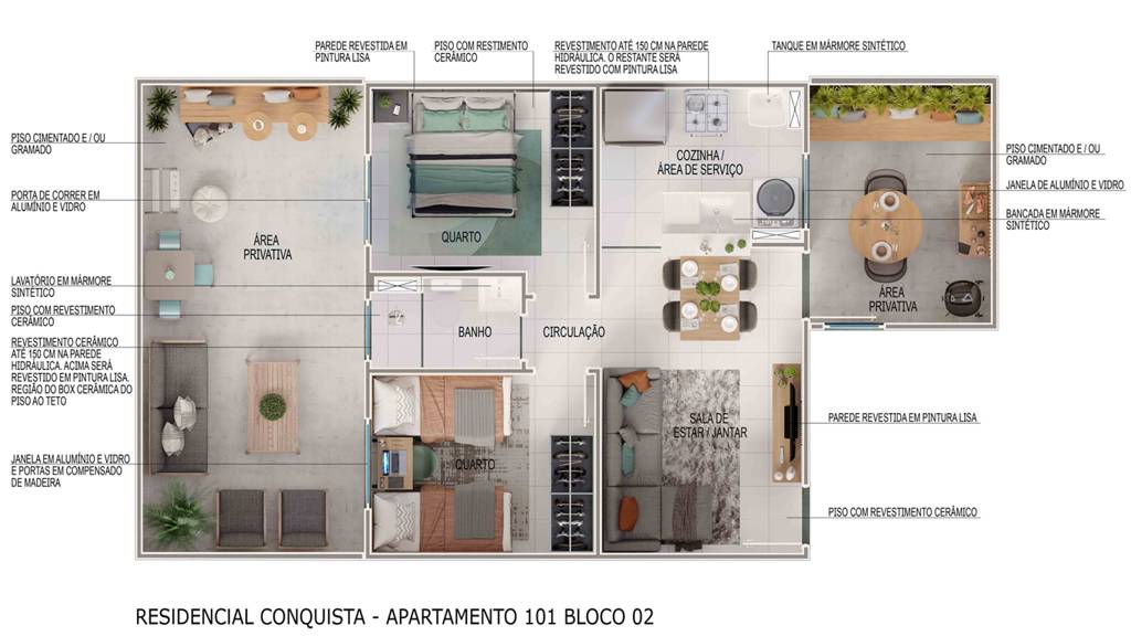 O Residencial Conquista foi pensado para quem cansou de adiar o sonho da casa própria. Um 2 quartos completo, condomínio fechado com lazer e condições facilitadas. A partir de R$ 220.990,00.
